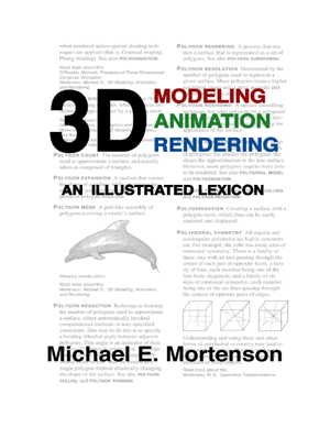 3D Modeling, Animation, and Rendering - Michael E. Mortenson - This lexicon presents the definitions for over 1200 terms, with hundreds of illustrations. It includes terms from many related subjects, such as 3D modeling, animation, rendering, CAD/CAM, cinematography, light, physics, natural behaviors, and atmospheric phenomena. Terms related to animation include character rigging, keyframing, lattice animation, light animation, motion capture, onion skinning, skeletal animation, and storyboarding. Those terms related to rendering include camera work, mood-setting atmospherics, special shots, ambient light, beauty pass, caustics, color models, the graphics pipeling, and ray tracing. It is writen for students, teachers, and professionals, as well as for lay readers who want a broader understanding of the tools and concepts involved.