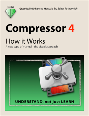 Compressor 4 - How It Works - Edgar Rothermich - This is the only interactive multi-touch eBook available for the application "Compressor 4"! "Compressor - How It Works" from the GEM series (Graphically Enhanced Manuals) explains Apple's compression application "Compressor 4" with rich illustrations and diagrams that are not found in any other manual. This 167 pages interactive Multi-Touch eBook (with an extensive Glossary) presents this software application in great detail with that easy to understand, visual approach known from other books from the best-selling GEM series. "I wish all the manuals on software were like yours!" - Giovanni C. "You have the gift of making difficult concepts understandable" - William B. "Your style is the most informative and clear I have ever seen" - Mark D. "Great stuff Edgar! I bought your other Logic GEM books and love em..." - fform "Thank you so much for your fantastic guides; I've learned so much!" - Brandon B. "I love your manuals." - Eli. UNDERSTAND , not just LEARN That is the motto of the book series "Graphically Enhanced Manuals" (GEM). They're a new type of manual with a visual approach that helps you UNDERSTAND a program, not just LEARN it. No need to read through 500 of pages of dry text explanations. Rich graphics and diagrams help you to get that "aha" effect and make it easy to comprehend difficult concepts. The Graphically Enhanced Manuals help you master a program much faster with a much deeper understanding of concepts, features and workflows in a very intuitive way that is easy to understand